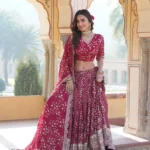 Step into festive elegance with this premium viscose jacquard lehenga choli set, featuring exquisite sequins embroidery and a beautifully crafted faux blooming dupatta with cut-work detailing.