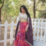 Step into elegance with this designer lehenga choli ensemble, crafted from digital printed faux georgette with heavy sequins and thread embroidery. The lehenga features 3.5-meter flair, stitched with canvas & can-can, cotton inner lining, and a zip closure with dori latkan, offering both comfort and a graceful silhouette.